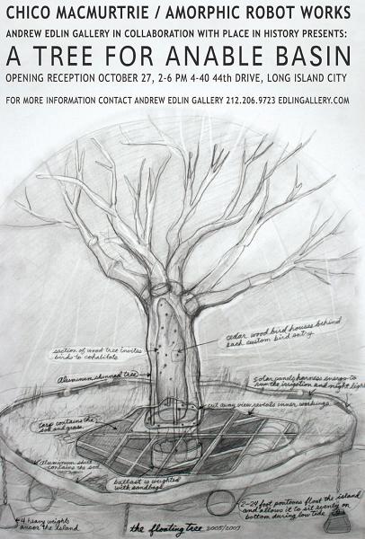 The winning entry to the LIC Grounded competition, A Tree for Anable Basin, was fabricated at the Amorphic Robot Works in Red Hook and launched into the East River in the fall of 2007. After 2 weeks in the East River, the tree was towed into Anable Basin (after a brief, unintentional trip north to the Queensboro Bridge), where it remained for a month.